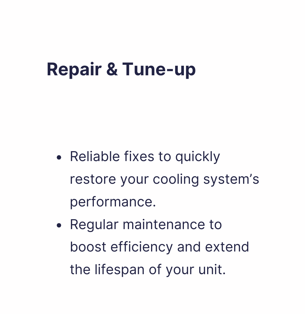 Check-Ups & Repair services from Helios Air ensure your air conditioning system runs efficiently and effectively all summer long. Our expert technicians conduct thorough inspections, maintenance, and adjustments to key components, such as filters and coils, to enhance performance and prevent breakdowns. If you're experiencing issues like capacitor failures or refrigerant leaks, we offer reliable repair services for all major brands, restoring comfort swiftly and effectively. Schedule your check-up today to enjoy peace of mind and optimal cooling performance.